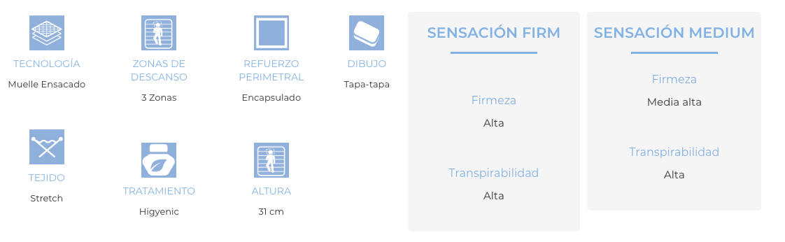 Destaca igualmente la suavidad de sus dos capas diferentes de Tecnocel, lo que lo hacen muy confortable.