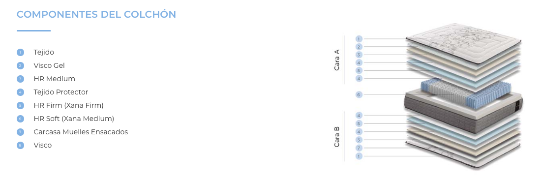 Por todo ello, nace Xana. Un colchón que ofrece dos tipos de firmeza según tus prioridades. ¿Firm o Medium? Es tu momento. Elige tu Xana. Elige tu forma de vivir y soñar. Su independencia de lechos hará de este colchón el complemento ideal para el final de tu jornada