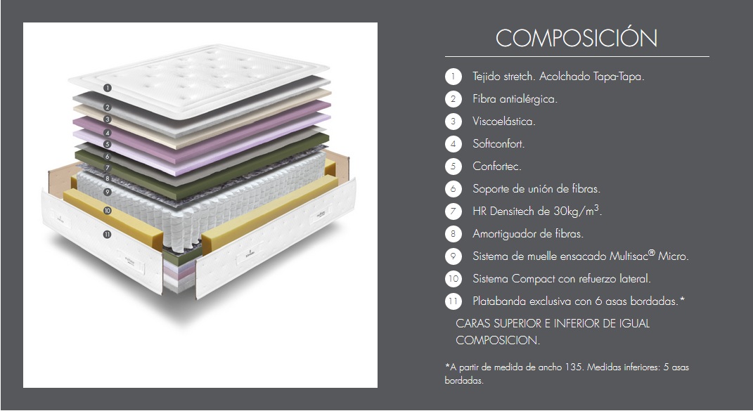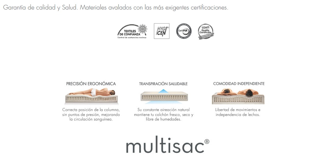 • PRECISIÓN ERGONÓMICA: El sistema Multisac® está compuesto por muelles ensacados individualmente que se adaptan al cuerpo de forma precisa, proporcionando una ergonomía perfecta.