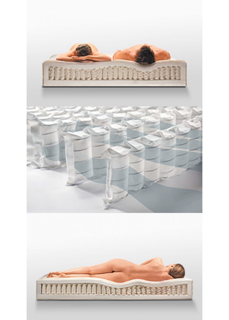 • INDEPENDENCIA DE LECHOS: El núcleo de muelles ensacados, absorben el peso y movimiento de cada uno de los durmientes, sin transmitirlo a la otra persona.