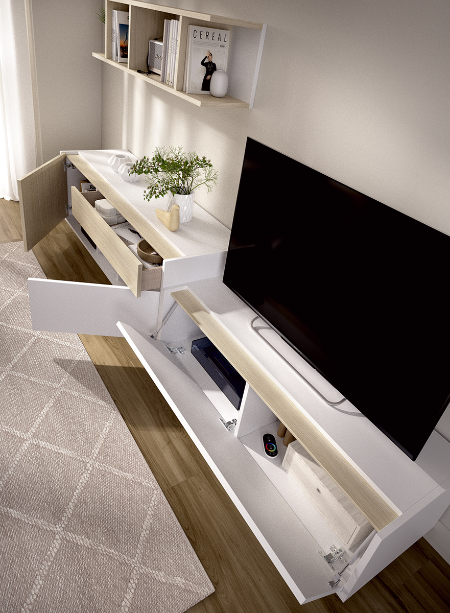 Mueble de Salón Duo de 270cm ancho y 45 cms. de fondo compuesto por: