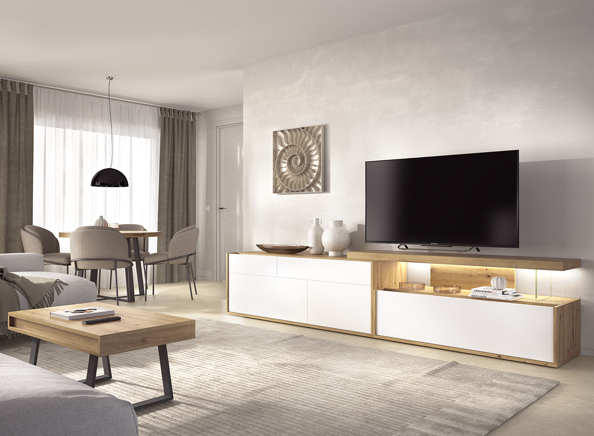 Mueble de Salón Duo de 270cm ancho y 45 cms. de fondo compuesto por: