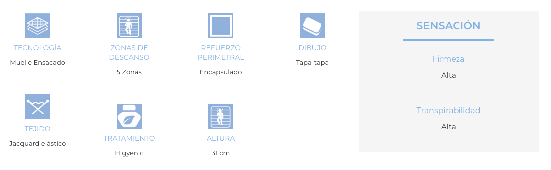 Destaca igualmente la suavidad y aireación de sus dos capas diferentes de Tecnocel, lo que lo hacen confortable y transpirable.