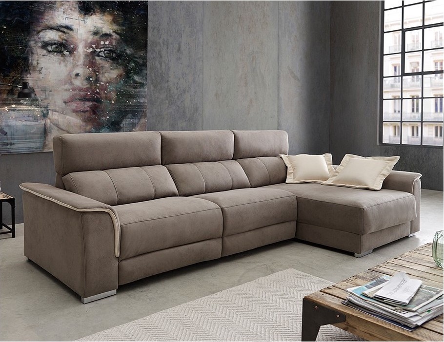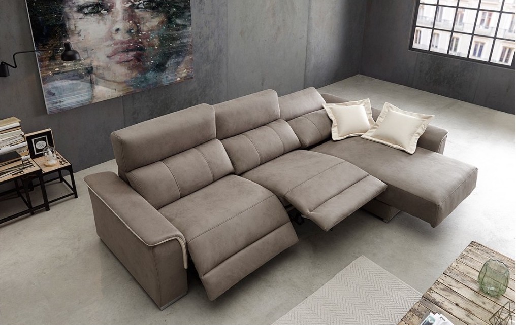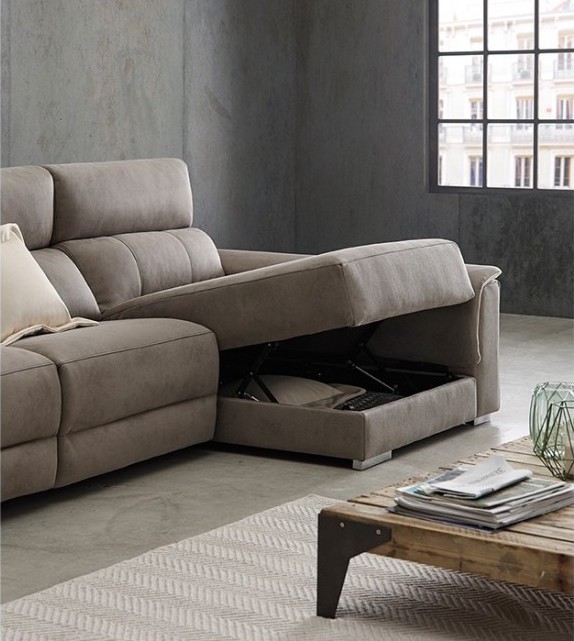 - Sofá 4 plazas con chaiselongue deslizante motor arcón de 222cm
