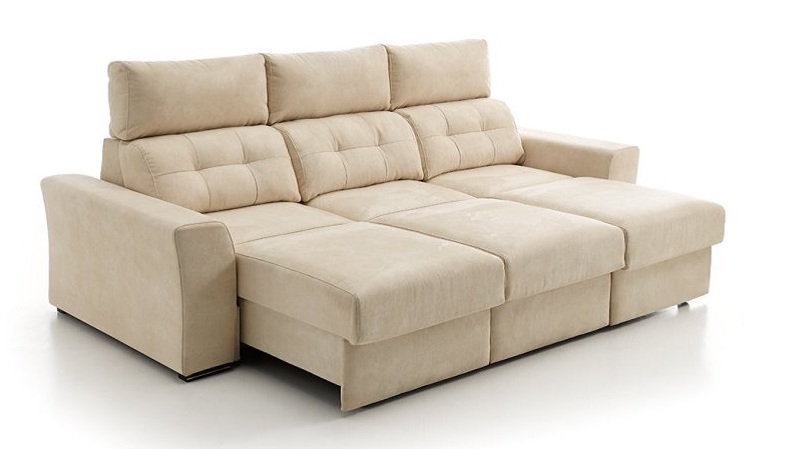 - Sofá 4,5 Plazas con Chaiselongue deslizante arcón de 260cm (2 Asientos 70cm + chaiselongue 70cm)